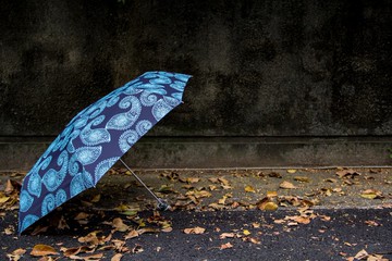 UrbaneUmbrella 鈦色傘骨三折變形蟲印刷傘-深藍