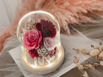 不凋花玻璃罩夜燈【輕裸膚粉】永生花/新婚/七夕情人節禮物/