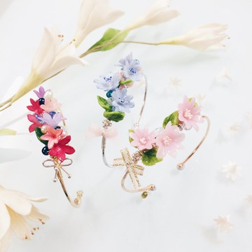 Pamycarie夏日樹脂黏土花束925銀線鍍14K金銅手鐲