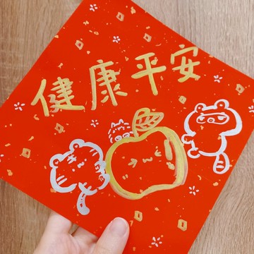 ⋯⋯熊熊的話⋯⋯“把壞運氣留在過往,期待新的一年健康平安、事事順利~”✔️傳統春聯宣紙,搭配手寫的溫暖與手繪滿滿的祝福✔️不防水,不防曬,讓春聯把壞運帶走,在新的一年帶給你好運連連✔️因為是一張一張寫出來的,每張都是獨一無二,筆觸保證不會百分百相同⋯⋯關於它⋯⋯🔸尺寸約17*17公分🔸材質灑金宣紙🔸說明▪️已有的春聯款式:健康平安▪️選擇圖文客製:提供和自己相關的句子/想法,圖就交給熊熊,一整年看到都覺得很促咪訂單備註範例:✔️幫我寫大吉大利➡️題字就是“大吉大利”,圖由熊熊自由發揮✔️我不知道要什麼,但我怕蛇➡️熊熊幫你決定圖和字,當然圖文不會和蛇相關✔️提供一個想法:給我來隻貓➡️圖會有貓,字可能是新年好喵、有隻貓咪喵喵喵之類的⋯⋯注意事項⋯⋯▪️現買現繪需要時間,10張以上可能需較長備貨時間,如有急需請告知討論▪️因螢幕顯示器差異與實品可能有差距,以實品收到為主▪️賣場內都是原創角色,圖、照片、影片都憑作者靈感構思、拍攝,侵權必究喔