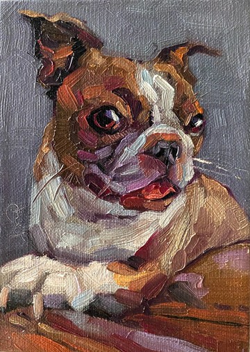 狗油畫原創 寵物肖像藝術品 動物微型牆藝術