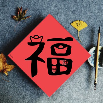 單字-福 隸書 手寫春聯 斗方 馬年春聯