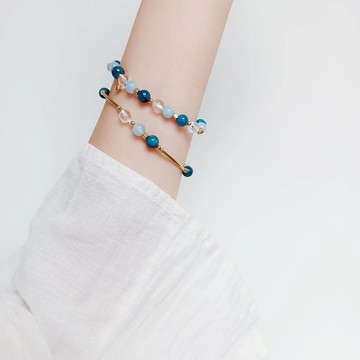 ‖主要材質‖❈金屬:純色無電鍍黃銅❈線材:日本製蠶絲彈力線❈尺寸:照片手環約15cm模特兒實際手圍是13.5cm照片中是較寬鬆的戴法,你也可以選擇貼敷的尺寸唷❈天然石藍磷灰石 6mm海藍寶石 6mm白水晶 6mmhttps://live.staticflickr.com/65535/52143865400_af7ea84976_w.jpghttps://live.staticflickr.com/65535/52143380856_2b6d77a381_w.jpg【加購敲字】客製敲字吊牌/英文大寫字母/不單販售僅能加購/手工敲字更有紀念意義https://www.pinkoi.com/product/Jdjc5nw4‖作品說明‖❈海藍寶的希拉名是-Aquamarine,被作為三月誕生石,象徵沉著與勇敢、幸福和長壽。古代人們發現海藍寶石的顏色如同海水一樣蔚藍,是海水之精華海藍寶石與水的親密聯繫,因此長期以來它都被當做護身符。❈白水晶的白淨透光,給人帶來心靈的平靜,彷彿能淨化負能量、提高專注力、排解焦慮、改善低落情緒,散發出一股潔淨、充滿希望的正能量❈磷灰石,希臘名為Apatite是一種能量石,據說可以增強人們的自我表達能力並帶來令人滿意的關係。不僅使您與家人,戀人和朋友之間的紐帶,而且使您的團隊和組織之間的紐帶更加牢固。★想看其他三條對鏈款式請點擊★【光Hikari】兩條姊妹對鏈/日本蠶絲線/太陽石/黃鐵水晶https://www.pinkoi.com/product/xnMW5FkS【紫幽靈】姊妹/日本蠶絲線/白水晶/俄羅斯草莓晶/巴西紫幽靈https://www.pinkoi.com/product/4pJBrcxf【刻在你心裡】愛情手環/太陽石/粉晶/草莓晶/日本蠶絲線https://www.pinkoi.com/product/rRwdHjDU★想看藍磷灰石作品請點擊★【綠野仙蹤】水晶項鍊/可客製化長度/約會必備/藍磷灰石/柱狀水晶https://www.pinkoi.com/product/4pHZjUv8【綠野仙蹤】氣質手環/藍磷灰石/藍綠色半透水晶/日本製蠶絲線https://www.pinkoi.com/product/BQ7KPMHu‖包裝說明‖https://live.staticflickr.com/65535/52131380874_996207ae72_z.jpg❈送禮包裝❈✓禮盒 ✓拭銀布 ✓品牌小卡 ✓品牌貼紙✓紙絲 ✓保固卡 ✓束口紗袋 ✓亮面緞帶✓厚版夾鏈袋 https://live.staticflickr.com/65535/52131371054_5540db0334_w.jpg❈環保包裝❈✓禮盒 ✓拭銀布 ✓紙絲 ✓保固卡 ✓厚版夾鏈袋 ❤若需要環保包裝,請在購買備註註明,地球感謝您❤https://live.staticflickr.com/65535/52131152773_e6a7b38714_w.jpg‖飾品保養‖❈黃銅❈黃銅氧化不用擔心,滾滾手作選用純色無電鍍的黃銅,與一般電鍍飾品不同,不用怕會掉色。另外,我們包裝內附有「拭銀布」,可以用來保養黃銅喔!1.使用拭銀布、拭銀棒或銅油輕擦黃銅表面2.建議運動時取下,避免接觸汗水,洗澡後將飾品擦乾3.若長時間不配戴則建議放入密封夾內,可減緩與空氣接觸而氧化4.未電鍍純色黃銅,顏色變深為正常氧化現象喔❈水晶/天然礦石❈滾滾手作精心挑選天然水晶與礦石搭配飾品,因水晶為大地孕育的美麗事物,每種水晶與天然礦石的硬度不同,請溫柔對待、小心輕放,避免碰況喔!Pinkoi站內有詳細解說如何幫水晶消磁⤵https://www.pinkoi.com/magz/1_WBqVGZ‖售後服務‖❈免費修改或維修一次❈https://live.staticflickr.com/65535/52045806927_aa9622b27b_c.jpg‖購買須知‖1.此商品為訂製商品,在下單付款完成後開始製作,製作期約7-14個工作天,如需指定到貨日,務必在下單前先訊息聯絡溝通2.商品可能因光線、螢幕色彩、個人因素而略有差異,每顆天然石或琉璃有形狀、大小、紋理上的不同,非屬商品瑕疵。若期待與照片完全相同,建議到市集實際選購喔‖想聯絡更多‖️Facebook:滾滾手作️Instagram:roll.roll2019實體:來市集現場試戴、感受飾品溫度‖產地/製造方式‖MADE IN TAIWAN/HANDMADE❈滾滾手作❈ 設計師有特殊教育與心理諮商背景,相信一件飾品不只是飾品,更是傳遞溫暖和心願的橋樑
