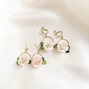 【薔薇花環】樹脂水晶花耳環