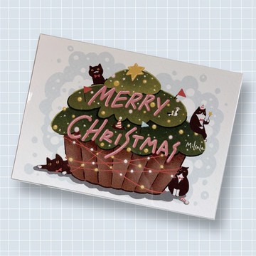 腳毛毛聖誕樹-炫光聖誕明信片1入