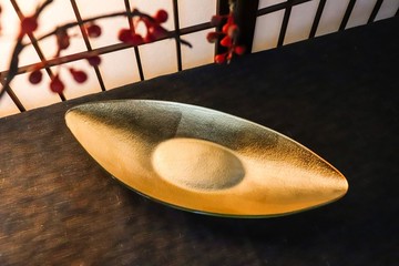**乘載無限可能的方舟,為心中所繪製的夢想藍圖,展開絢爛多彩的旅程。****一個人的成功,在於沒人看見的背後,不斷的磨鍊、精進,造就不平凡的自己;****如同這希望之舟,經過不斷的塑型與打磨,才能造就柔美流線造型與溫潤的質感光澤。****希望之舟象徵著不畏艱難,乘風破浪,擁有海納百川的雅量;手工貼箔工藝覆蓋****全船,更意味著左右逢緣,達到與人合氣生財之成就。**│產品內容│單入組尺寸 : 長 365 x 寬 150 x 高 50mm (1片)材質 : 玻璃 手工貼箔工藝包裝 : 禮盒包裝 │清洗方式│請以海綿取用適當清潔劑手洗方式清洗,並使用柔軟布巾擦拭,勿放入洗碗機或微波爐、烤箱加熱。│注意事項│◎玻璃盤為手工貼金銀箔類產品,建議耐熱溫度為62正負5度。◎產品屬手工金箔類,會因時間與環境條件影響產生一定的氧化現象,此為金銀箔類產品的獨特性,產生的金箔紋理屬手工質感獨特性特色,亦屬正常現象。https://live.staticflickr.com/65535/49744780083_6d6c7c1ed1.jpg◎避免金箔刮損,背面金箔勿與金銳或堅硬物品摩擦,主要為藝術裝飾用,可以為點心盤或飾品盤。◎建議清潔完成後立放於盤架上,請物堆疊過多或重壓,避免刮痕磨損,敬請留意。