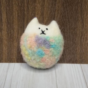 這款「貓蛋胸針」綴滿了以獨角獸色彩為靈感染製的羊毛絨球。內襯採用薰衣草色毛氈,整體營造出夢幻糖果般的氛圍。