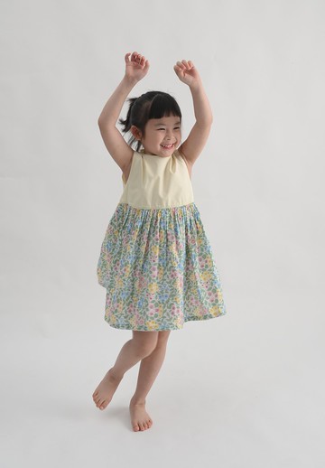 \季末出清/ Suika坎特斯洋裝。棉與二重紗完美拼接。鵝黃、粉紅