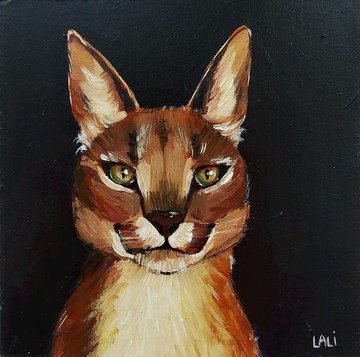 木板上原創油畫 CARACAL 掠食性貓肖像 5x5 英寸