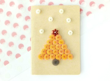 手作捲紙卡片-夢幻圓點聖誕樹 漸層黃粉色