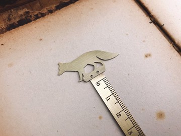 https://youtu.be/wMK0U3hZdZs⊕用6/0鋸絲一支支手工切鋸製作的動物書籤尺,黃銅材質,動物剪影輪廓生動,尺面經染黑後刷亮,另與動物本體鉚釘接合,質感細膩,既可當尺亦可當書籤兩用。⊕在家看書時,可將動物本體露於書頁外,如同小動物陪伴閱讀﹔若用於手帳或書籍需攜帶外出時,再將書籤整支夾入書頁內,可保護細緻的動物輪廓避免凹折。書籤表面已做一層保護處理,除非刮傷,否則金屬色澤不會有太大變化。⊕材質與尺寸 書籤尺:黃銅 包裝:經手工車縫的描圖紙 書籤整體尺寸:13.1 x 3.8 cm 黃銅厚度:0.5 mm 十公分尺面⊕由於每一件商品皆為手工製作,所以每一件的細節、色澤會有些許不同,請能接受者再行購買。若有任何疑問,請先與我們聯繫、溝通,確認無誤後再下單,謝謝。⊕「臍加厝手路金工」是由兩個熱愛金工與文具,個性和創作風格截然不同的女生所組成的工作室。「臍加厝」取自「起家」諧音,而肚臍則是一個生命最開始的起源;自藝術創作研究所畢業的我們,在畢業後選擇留在台南鄉下,從一間租賃的老式平房開始實現我們的夢想──以手思考,透過手作的過程,將彼此對金工的熱情和想法內化成作品,把一種對理想生活的憧憬與生活的溫度傳達給世界。產地台灣 手工製作