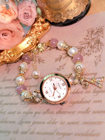⚜️王妃的珠寶盒⚜️14k金包銅粉色浪漫優雅高貴巴黎小香風天然水晶實用手錶設計款手錶再也不孤單 水晶再也不單調!🎀有許多朋友好奇手錶跟水晶是否能夠一同配戴,不能一起配戴的原因,怕手錶配件刮傷心愛的水晶,或是含鈦鍺成分的礦石影響手錶的正常運作,因此Eva特別設計手錶結合水晶設計款,讓實用價值達到最上乘的效果🥰🔮水晶靈性🔮⭐天然淡水珍珠 養顏美容 安神定驚 增柔美親和力⭐馬達加斯加粉晶 粉晶中的貴族 招桃花增魅力提升異性緣 心境開朗機芯類型:石英材質:不鏽鋼、14k金包銅配件適用人群:女表徑:約24mm錶盤形狀:圓形顯示方式:指針式防水深度:30m⚠️貼心提醒:⭐手錶為生活防水,無法配戴著洗澡、游泳、戲水唷!同樣必須注意不能接觸化學物質。⭐若洗手不小心沾水只要盡快擦乾即可。⭐請注意溫差過大會導致錶內空氣水分凝結而引起錶內水結霧的情況,若發生此情況請盡快到專業手錶維修部進行清洗及保養。⭐手錶畢竟是精密儀器,請愛護使用。良好的使用習慣可以讓水晶及手錶壽命延長唷🌸主石、配件若遇缺貨,將以相近與適合款式替代。👑氧化為金屬特性,不配戴時,請用軟布擦拭放入夾鏈袋延長配戴時間。👑避免配戴飾品做粗重工作或重摔,容易使表面損毀刮傷。👑請勿帶著洗澡、玩水、游泳、泡溫泉,容易被侵蝕。👑配戴時請勿接觸香水、醋、乳液、化學用品等,避免加速氧化。👑手鍊會因每個人手圍不同,編排方式會依長度有所微調。👑商品皆手工製作,水晶礦體無法製作完全一模一樣。* 礦體表面可能有些微凹凸不平和冰裂,但請注意它來自原礦的石頭。● 本賣場盡可能呈現接近實際商品的照片,但請理解沒有任何天然石是完全相同的。● 請注意,根據您使用的顯示器,照片的顏色可能會略有變化。