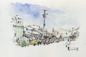 八德重慶街/手繪原作/淡彩/贈送畫框