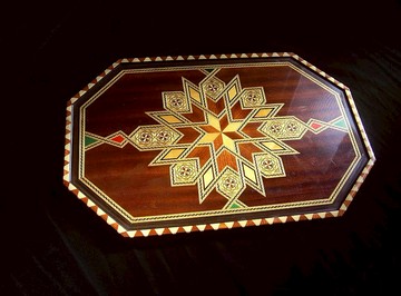 【老時光 OLD-TIME】早期二手大款西班牙製拼木藝術掛飾托盤