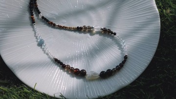 __在放鬆的時光裡,喝一杯香濃的海鹽拿鐵,感受那鹹甜的滋味所帶給你治癒的溫柔。__這件手工飾品將 海鹽拿鐵 概念巧妙轉化為視覺享受,主要運用月光石、瑪瑙、海藍寶等礦石水晶製作出這款【重焙咖啡】與大家相見!✨別被平凡束縛,讓這獨一無二的飾品為你增添亮點,散發美好氛圍。無論是搭配休閒服飾或正式穿著,它將成為你的時尚利器,為你增添更多自信與魅力。💖〚金屬材質〛 S925純銀(鎖扣、鍊條等)〚使用珠材〛 月光石隨行石、木化石、畫圖石、白水晶、海藍寶、茶水晶、瑪瑙、黃虎眼石、魔鬼海藍寶、咖啡貝殼珠、黑瑪瑙、白瑪瑙、銀珠、南瓜銀珠、波浪銀圓片〚項鍊總長〛 44.5cm (含2.5cm延長鍊)〚保養須知〛// 避免觸碰香水、汗液或各類化學產品,也不宜長時間浸泡溫泉或海水,若碰到可用清水清洗並將其擦乾,或使用吹風機低溫吹乾。// 未配戴的飾品建議先用拭銀布輕輕擦拭,在完全乾燥情況下放入夾鏈袋中保存,否則容易使飾品氧化發黑。* 請不要等到發黑了才清潔,因為這時已經難以用拭銀布擦除。// 飾品的收納請分開裝,避免彼此刮花,然後置於陰暗處存放,切忌避免陽光直射或接近熱源。// 拭銀布因含有要藥學成分,所以切勿清洗,且只適用於金、銀、銅,不適用於合金的電鍍飾品,否則會使電鍍層快速脫落而顯現出金屬原本的顏色。// 配戴時盡量避免碰撞、大力拉扯、接觸粗糙表面或物品,以免造成刮傷。〚售後服務〛// 由於本館商品多為現貨商品且數量稀少,只提供商品退貨服務!// 拆封時請務必全程錄影,並檢查有無瑕疵,若有重大瑕疵須退換商品,請於收到商品後2日內到私訊問題,並提供拆封影片,我們會盡快協助您。// 退回商品需包裝完好且附件齊全,如有贈與商品也必須保持完整退回,若有發生損傷或遺失等情況,需要由消費者負擔部分處理費用。請特別留意 [ 以下事項不列入瑕疵範圍 ]⬇️• 天然石均有可能出現礦缺、裂紋或黑點,屬於天然現象。• 由於商品為手工製作,所以銀配件上會有些許細小刮痕。• 尺寸為手工測量,會盡可能給予正確數值,誤差±0.1~0.5cm左右。• 商品照片皆為相機實拍,因顯示器不同,故可能有些許色差。• 氧化 / 使用痕跡: 925純銀飾品擁有優秀的保色和耐磨度,但若無適當保養,在使用後仍會有使用痕跡與氧化情況發生。感謝你選擇暮穆,我們不僅提供商品,更希望為你打造一種融合時尚與溫暖的品牌體驗。在這裡,我們一同追尋未來時尚的步伐,讓你的獨特光芒閃耀不盡。✨💖**// 在簡單裡點綴一抹獨特 //**