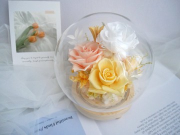 永生花迷你玻璃罩。交換禮物多色可選【附透明禮盒】
