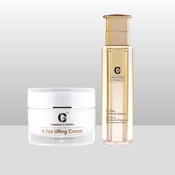 內容物:1. V-Tox肌因動能瞬效凍齡精華55ml含有頂級蜂毒胜肽及四大緊膚因子,拉緊肌膚,不讓年齡超越,深層滋養賦活,打造凍齡捷徑■主成分:-緊緻 l 蜂毒胜肽、蛇毒雙胜肽-嫩白 l 富勒烯C60、Co Q10、艾地苯-修護 l 神經醯安-修容 l 繖花醇■使用方式: 基礎保養化妝水後,取適量精華液塗抹於全臉搭配緊緻按摩手法,均勻抹完全吸收即可2. V-Tox肌因動能緊顏霜50ml緊密結構,並添加預防水分流失成分,減少因年華流失的肌膚光澤彈性,改善肌膚問題■主成分:-緊緻 l 蜂毒胜肽、六胜肽、多肽祛黑緊實因子-保濕 l 複合型神經醯安-嫩膚 l 奧勒岡小白花油、金黃色荷荷芭油■使用方式: 基礎保養化妝水與精華液後,取適量乳霜塗抹於全臉搭配緊緻按摩手法,均勻抹至完全吸收即可■適用膚質:乾性、老化問題保存年限:3年貨源:原廠公司貨產地:台灣https://live.staticflickr.com/65535/52001183086_081ac4b335_k.jpg
