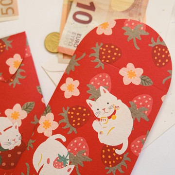 **「沈穩」x「可愛」**是這次紅包的設計概念。紅包袋是一種大量出現在不同年齡間為了傳遞祝福而存在的紙文具,或許有人認為紅包袋的重點在裡面裝的東西,但就因為是重要的東西,我想做出能與心意相應的紅包袋。**以小貓為繪製主角,貫串在祝賀場合的萬用款。**選有纖維紋理的手工紙加上大人感的可愛插畫,想像收到的人在還沒打開前,就可以覺得是很棒的禮物了。**貓步高升紅包組**https://live.staticflickr.com/65535/53366208993_3552913db6_b.jpg即使與渴望的事物距離遙遠,輕盈的縱身一跳,這次比上次更高了。願生活能一步一腳印,步步高升好福氣!**莓好貓貓紅包組**https://live.staticflickr.com/65535/53366400990_636530f9f0_b.jpg恭賀貓喜、多福多貓、貓貓平安,貓咪陪你度過每個值得祝賀的時刻!**特色介紹**尺寸|9*18.5cm ( 不含蓋 )設計|弧形封口,紅包封上都有小插圖搭配,彌封處有做切縫方便使用。https://live.staticflickr.com/65535/53366149818_b2454a0484_b.jpg材質| 手工紙的纖維紋理豐富,觸感舒適無香精,非亮面,細看可見紙纖維自然透出的微光。https://live.staticflickr.com/65535/53366149983_4246ee3c98_b.jpghttps://live.staticflickr.com/65535/53366149863_1fc7e9e73e_b.jpghttps://live.staticflickr.com/65535/53366465605_0378bdfb1f_b.jpg小提醒|商品照已盡可能調到與實品色澤相符,惟螢幕顯示有可能存在色差。紅包在視覺上不反光,吸墨扎實且色彩偏古樸細緻。