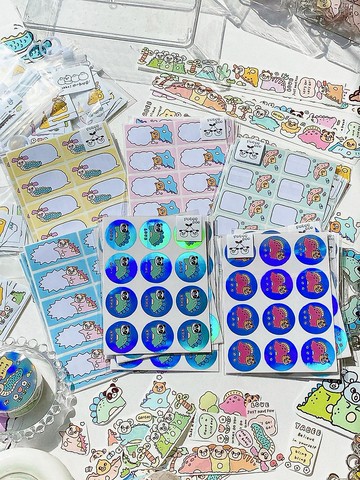 可愛的恐龍系列實在太適合對話框了!兩款方形的是可書寫材質,大小很適合貼在手帳裡另一款圓型是雷射閃閃恐龍貼紙,防水材質,想貼在哪裡都可以啦!尺寸:包裝約10x14cm,方形單張貼紙約2.5x5cm,圓形單張貼紙直徑約3cm,一包有兩種不同圖案,共多款圖案可選材質:方形霧面白底貼紙、圓形雷射防水貼紙yabee!開心動物園!每天畫三隻奇奇怪怪的動物,有些是平時生活中的夥伴,像是快遞員、修冷氣師傅、賣蚵仔煎老闆之類的,有些是天馬行空的動物,像是下墜到宇宙黑洞的兔子、搭番茄氣球去旅行的松鼠,有興趣可以來instagram:yabee.zoo看看我們每天的開心動物園!