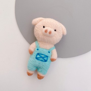 羊毛氈-穿吊帶褲的小豬鑰匙圈/別針/禮物/手作