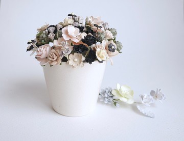 紙花、鮮花禮品、陶瓷白盆、桌上 DIY 裝飾