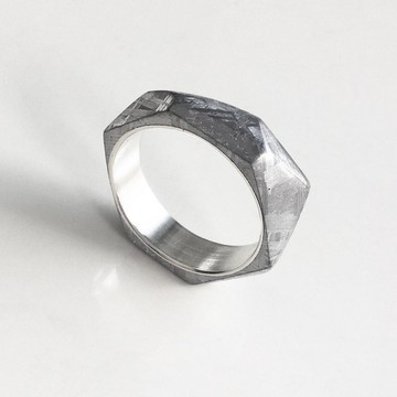 設計師手工切磨天然鎳鐵隕石戒指,多切面的戒指從不同角度欣賞皆呈現不同樣貌,卻都是同樣的美麗,為此我可以說,不管從哪個角度呈現我的心,方向都指著迷人的妳。◇ ASPECT collection/ 面面 ◇太空旅人的行囊裡裝滿了各種來自星空的故事,此系列遂將隕石琢磨無數切面,各切面上即表現出不同樣貌:走向不同的紋理是述說多采多姿的探險曆,大小不一的切面則是各自精彩的風景畫。無論呈現了哪一面,我們總是驚喜萬分。作品尺寸 / 圖中戒寬約7mm,依戒圈大小比例而有不同。戒圍規格 / 請參考圖片戒圍表說明,如訂購後不確定戒圈歡迎私訊。隕石首飾皆為純手工製作,每個切面分佈皆為獨一無二的喔!如果您需要更改戒指的任何細節比例,請與我們聯繫,我們可以為您完全客製!隕石外層可選擇原色 或電鍍銠金(電鍍加收1000元)內圍則鑲入純銀戒圈。戒指內圈將標註925字樣保證使用之純銀成數。也可另加其他刻字圖服務(依字數長短酌收工本費)訂製時程 / 接單後開始製作 需 18個工作天(不含假日)。此訂製款製作後將進行獨家進階保養防護,使隕石戒指品質恆穩。製作完成後除非有重大瑕疵外並不接受退件。 請放心訂購,此款訂製隕石戒指享有兩年內兩次免費清潔保養服務(您只需要負擔來往運費)。寄送配件 / 天然隕石首飾保證卡、包裝盒、拭銀布、收納夾鏈袋。---------------------------------------------------------------------來自星星的教授為我們帶來一種與宇宙同生的寶石 - 隕石他們原本是漂泊於浩瀚宇宙之中的小行星,受行星引力影響使其相互碰撞,進而脫離原本的軌道,開始宇宙中的漫漫旅程,正當我們看到一道奔馳的光點劃破寧靜的夜空,就是這位太空旅人找到了他第二個家。這些小行星們在很久很久以前來到地球,因其浪漫不凡的身世而被人們找尋發掘。除去它因熔損而暗沉的深色表皮,即顯現出不同於地球寶礦的銀亮紋理 - 維德曼交角花紋(鎳鐵隕石);時而深沈、時而閃耀的質感,表現在特殊角度交叉的幾何紋線之中,當它幻化為永恆的珠寶首飾,同時承載超越宇宙空間的使命,承諾、是不是也別具意義呢^^Sky Gemstone Jewelry / 台灣設計 / 手工製作https://youtu.be/zEcBx0tNQ8E我們欣賞天上閃耀的星星,更驚豔於隕石的天然紋理及故事,長時間以來 幸運能夠收藏到許多不同種類的隕石寶礦,對於哪些隕石可供配戴、如何取用等相關知識研究深入,因此曾為數間國外大品牌設計製作品質恆定的隕石首飾。在歐美國家有藝術家用隕石做創作,而用隕石做為訂婚戒或結婚週年紀念戒也逐漸興盛,畢竟在礦物年代上 隕石比鑽石來得更悠久,其無法複製且每個切面都獨一無二的特性,讓它更適合用來紀念充滿意義的特殊時刻。本團隊也多次於德國和美國珠寶展展示發表,獲相關媒體報導與肯定。https://更多品牌訊息請參閱我們的網站和部落格www.pinkoi.com/user/skygemstone◎只配戴使用天然寶礦和隕石的堅持是我們的DNA,因為對天然石的珍視與熱愛,絕無使用熔煉壓制等仿製品。也請閣下理解,天然石是極為可能因發現量銳減而在收藏市場有價格波動,因此我們商品訂價也可能受影響調整。◎我們提供收藏的隕石皆為天然真品,出貨時款式設計與照片同,主石也與說明內容相同,但主石紋路並不會每件都與照片樣本全然一樣喔。也因天然石都是獨一無二的,若偶遇內含物或礦缺會先拍照與客戶溝通確認。◎佩戴避免尖銳物品擦碰、洗澡泡溫泉時將首飾取下、沒有使用時軟布擦乾汗漬放至乾燥環境。