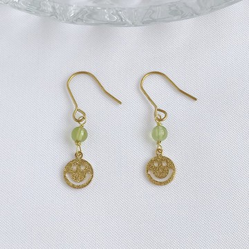 笑臉。橄欖石 天然石 黃銅耳勾 手作耳環 正能量 財富 避邪