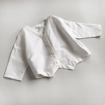 亞麻薄開衫小外套終於可以發佈嘍!為什麼磨蹭了這麼久?純粹就是強迫症媽媽想很多!面料挑選和測試,版型調整一改再改,就連釦子和縫線都糾結了多次!終於做好了!不用折磨自己了!希望媽媽們和各位寶貝可以喜歡!因為寶貝們的體溫調節功能還沒有很完善,每年季節交替媽媽們一定都和我一樣,在室內外冷風和暴曬悶熱之間掙扎!穿多了怕小孩一直流汗,穿少了怕被空調或冷風吹感冒,太陽太大就怕會曬傷更可怕的是戶外活動滿身汗,之後又進空調房,衣服濕濕、毛孔打開,沒涼快多久就要去診所報到了~~~媽媽心好累!面料:·100%純亞麻,天然透氣!涼爽快乾!·薄度適中,防曬又不悶熱!一件就照顧到春夏秋三季!超高CP值!設計細節:·領口,做成略寬的,清爽舒適。·貼邊,外翻設計,有型的同時絕不會過度摩擦寶貝的嬌嫩皮膚,脖子那裡真的很嫩!很敏感!又很愛流汗!·長袖:遮陽防曬,給討厭一直補擦防曬霜和穿穿脫脫的寶貝,或是突然起風,玩到一半,媽媽抓你回來塗防曬或換裝也覺得很煩,好嗎?·釦子,選用日本進口的按釦,細緻耐用!就算被家裡的小破壞狂弄掉,也可以再徒手裝回去,不用工具!或者找桃子媽來幫你裝回去!(強迫症媽媽真的沒辦法忍受衣服少一顆釦子!)顏色:自然白,另有兩色可選,藏藍色 https://www.pinkoi.com/product/aZeixJwd?category=4&ref_itemlist=6MtwysFc甜橘色 https://www.pinkoi.com/product/Pfm2eYvt?category=4&ref_itemlist=6MtwysFc四個尺碼供您選擇:90cm: 適合2~3歲、身高85~95cm、體重13kg左右;100cm: 適合3~4歲、身高95~105cm、體重16kg左右;110cm: 適合5~6歲、身高105~115cm、體重20kg左右;120cm: 適合7~8歲、身高115~125cm、體重26kg左右。製作週期:3~5個工作天 (週末及國定假日,要顧家庭,只接單,無法製作和發貨)❤️溫馨提示❤️- 純手工製作,會有誤差- 商品圖片因拍攝光線和每個人的屏幕顯色不同,會有誤差,以實物為準。- 完美主義者請勿下單!退換貨:因商品為訂製款,恕不提供退換貨,下單前請務必注意⚠️ 確認好顏色及尺寸!