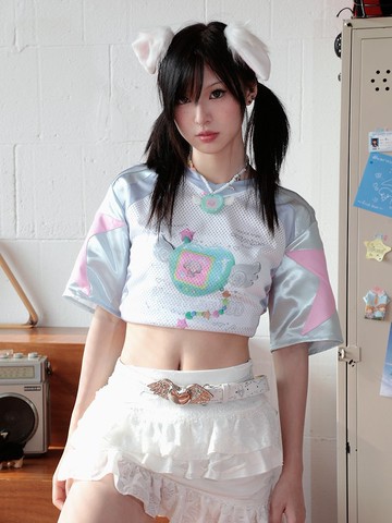 Hashtag DDD 原創千禧Y2K銀色復古運動拼接 電子寵物機短袖球衣