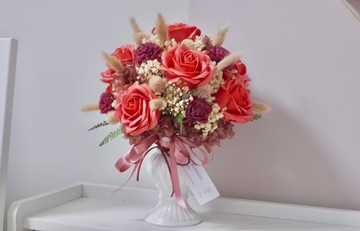 煙燻復古粉永生花捧花 l 橘粉色系 l 外拍婚紗 婚禮用品 新娘捧花