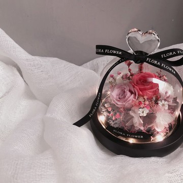Flora Flower永生花愛心玻璃罩夜燈-桃粉色系