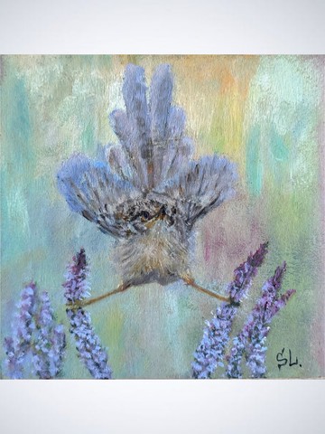 雀手工油畫雀藍色羽毛牆藝術野花夏季