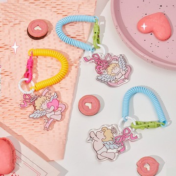 溫馨小天使亞克力掛件 鑰匙扣帶彈力腕繩