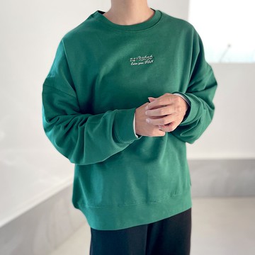 【中性】刺繡大廓形圓領衛衣堆背【綠】