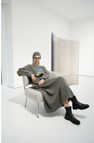 Painted Long Sweater 白眼女孩印花長毛衣 無性別穿搭