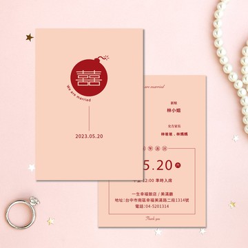 ★邀請卡資訊內容可更換成自己的內容。可更換的內容區域,請參考附圖細項。★卡片紙類:星幻卡(285g) 。★二款顏色的邀請卡可選擇。★本項商品套組價格含卡片、信封、囍字圓貼。★套組含250g厚磅珠光信封(16x11cm),五款顏色可選,和3cm囍字圓形貼紙。★若有其他數量需求,可先用聊聊詢問~★印刷及寄送時間:每週一至週五下單,在收到文字資料後會在48小時內跟您確認稿件內容(不含週六日及國定假日),最多可免費調整二次,稿件確認無誤及收到款項後就會送印刷。約4~5個工作天左右印刷完成既可出貨,不含假日及國定假日。寄出後約2-4天到貨(實際以送貨業者時間為主)。★若有急件請先告知,可先以聊聊詢問。★購買專案後請提供以下資料:您的PINKOI帳號:新郎名字:新娘名字:新郎家長名字:新娘家長名字:結婚或訂婚日期 ,例:(2022/09/06):提供喜宴餐廳名稱、地址、電話:入席時間:購買的品項款式編號:紙卡種類:信封顏色:貼紙款式:溫馨提醒:★每部手機、電腦螢幕顏色顯相均不同,與實品多少會有約10%上下色差,依印刷實品為準。每批顏色也不一定會完全相同,無法以此作為退貨理由。若對成品要求精準度極高的買家,請勿下單。★請買家若提供QR code的檔案,請先檢查完稿及圖片解析度是否ok。若因檔案解析度不足導致印刷品質不良,賣家不負任何責任。若需要幫忙轉成QR code碼,請提供正確連結網址,校對時請確認連結是否正確,若因買家提供錯誤連結網址,導致連結錯誤,賣家不負任何責任~★若有需要另行製稿或設計,可至聊聊詢問,另行報價。★內容校對再煩請確實校對無誤,若確認過後送印才發現資訊錯誤或錯字,由買家負擔重印的費用。★客製商品不適用七天鑑賞期,商品送印刷後,無法取消或退貨。客製化商品因具有排他性(無法再次販售給其他客人),「本商品為客製化內容,下單即代表已知悉並同意不再享有七天鑑賞期」。#婚禮 #邀請卡#雙面印刷 #喜帖 #結婚 #訂婚 #客製化卡片 #邀請卡信封