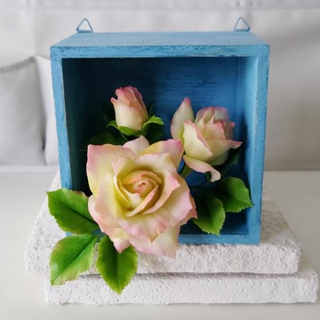 黏土手作 ATO42手刷復古藍木框玫瑰花擺飾