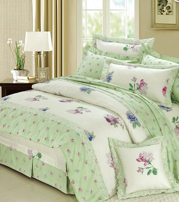 【R819 慕夏花絮】七件式全套組尺寸:5x6.2尺6x6.2尺內容:舖棉床罩 x1 (5x6.2尺,6x6.2尺)舖棉被套 x1 (6x7尺)歐式枕套 x2 (48x75cm)舖棉枕套 x2 (48x75cm)抱枕(含枕心) x1材質:100%精梳棉 ,經緯紗173x130 / 60x60支棉紗,美國棉商標印染方式:印花染色處理更是採用成本較高的環保印染染劑,再經防縮、防起毛球、防褪色與雙道水洗的去化學物質處理,讓您在使用起來更加舒適健康。被套內綁繩:四角隱密式床包收縮帶:有 (床頭床尾ㄇ字型車法)可承受之床墊厚度:約24公分~30公分清潔保養方式:可水洗 / 可乾洗 /可烘乾(請用低溫)