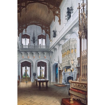 【圖1 - 圖5 為原件圖】【圖6 為巴伯斯貝格堡(Schloss Babelsberg)今日鳥瞰】作者:Carl Graeb (1816~1884)名稱:【巴伯斯貝格堡餐廳】:出自【巴伯斯貝格堡:十二幅水彩】(Schloss Babelsberg. Zwölf Aquarelle)第八張。署名:無(Potsdam, Ferdinand Riegel Verlag)。技法:彩色石版版畫。年代:1853年。尺寸:紙面54 x 41/ 畫面40 x 30 / 卡紙50 x 70 cm。(BO 083-8)備註:含雙層卡紙裝裱 (不含框)這張彩色石版,出自【巴伯斯貝格堡:十二幅水彩】圖冊,紀錄了巴伯斯貝格堡(Schloss Babelsberg)的內外景緻。這座城堡建於1833~1849年,分兩個階段完成,是當時普魯士威廉王子(Wilhelm Friedrich Ludwig, 1797~1888)的夏宮所在。1829年,威廉和奧古斯塔·卡特琳(Augusta Marie Luise Katharina, 1811~1890)成婚,當時的普魯士國王腓特烈·威廉三世(Friedrich Wilhelm III, 1770~1840)出資為二兒子在波茨坦(Potsdam)的巴伯斯貝格城區建造居所,由知名的新古典主義建築師卡爾·弗里德里希·申克爾(Karl Friedrich Schinkel, 1781~1841)負責設計,由於當時歐洲流行哥德式的復古風潮,設計遂以哥德風為主軸。在德國浪漫主義的這個時期,城堡象徵著德意志的整體,加上威廉的妻子奧古斯塔迷戀英國的哥德風格,並自行專研,在設計上和建築師申克爾多所衝突。然而,最後由於經費不足,城堡整體設計只完成了一部分。1835年10月,第一階段落成,新哥德式的落地大窗引進大量光線,可以飽覽周圍的風景,另外,也包含了做為餐廳的八角建築。1840年,登基為王的威廉四世(Friedrich Wilhelm IV, 1795~1861)沒有孩子,因而弟弟威廉成為儲君,他在巴伯斯貝格的住所便顯得寒酸,不夠體面。於是,原本的設計繼續執行,但申克爾於1841年過世,他的弟子帕希尤斯(Friedrich Ludwig Persius, 1803 ~1845)接續建築工程,但仍在執行上和奧古斯塔公主意見不一,最後只能屈就。兩層樓高的舞廳出現,原本的八角建築恢復成為茶點沙龍,新的西側除了許多給孩子們的房間外,也增加了大廳型的餐廳,最後再加上一座雄偉的塔樓。帕希尤斯去世後,(Johann Heinrich Strack, 1805~1880)為整體工程收尾,至少,他的建築想法符合奧古斯塔公主的品味。1849年10月,巴伯斯貝格堡完工。1861年,威廉登基成為普魯士國王威廉一世,1871年,普法戰爭後,更成為德意志帝國的第一任皇帝。1862年9月22日,威廉一世在巴伯斯貝格堡接待奧托·馮·俾斯麥(Otto Eduard Leopold von Bismarck, 1815~1898),商議國是,最後任命卑斯麥為首相,藉此開展了德意志歷史的新篇章。威廉死前,一直住在巴伯斯貝格堡,1907年,此處原本要繼續擴建,以便德意志帝國末代王儲普魯士的威廉(Wilhelm von Preußen, 1882~1951)使用,但最後作罷。今天這裡連同波茨坦和柏林宮殿與公園建築群,被列入世界文化遺產名錄。十九世紀40年代,普魯士國王威廉四世和皇后委託藝術家卡爾・葛雷伯(Carl Georg Anton Graeb, 1816 ~ 1884)繪製波茨坦和近郊及夏洛特堡的建築風光,數量高達94張,其中包括了12張巴伯斯貝格堡的景緻。葛雷伯是十九世紀上半葉德國浪漫主義風景大師,當時普魯士美院教授卡爾・布萊森(Carl Eduard Ferdinand Blechen, 1798 ~1840) 的學生,也向當時的宮廷畫師,他未來的丈人約翰・蓋斯特(Johann Gerst, 1792~1854)學畫。1838年,他成為柏林國王市立劇院的劇場畫家,但十四個月後,便周遊歐洲各地長達四年,並不時展出自己旅行途中的作品。1844年,他回到柏林,和丈人開設劇場裝飾畫作坊,直到1851年被任命為宮廷畫家為止。1853年,波茨坦的費迪南・里格(Ferdinand Riegel)出版社委由不同的版畫藝師與作坊,將葛雷伯的12張巴伯斯貝格堡水彩畫作,翻製成彩色石版畫冊。多幅版畫作品來自柏林在地的石版畫家威廉・洛耶洛(Wilhelm Loeillot, 1804~1881) 及溫克曼父子印刷作坊(Druckerei Winckelmann & Söhne),最後以【巴伯斯貝格堡:十二幅寫生水彩】(Schloss Babelsberg. Zwölf Aquarelle nach der Natur gezeichnet )之名發行。今天,第一版已難尋見,連波茨坦博物館(Potsdam Museum)也只藏有其中的兩幅石版畫面。之後,柏林恩斯特與孔恩出版社(Verlag Ernst und Korn)再次發行巴伯斯貝格堡的畫冊,從預購者名單中,可以知道當時一共印製了126套,多是王公貴族與商賈顯貴,而且發行年為代1872年,正是這座城堡的主人普魯士國王威廉一世成為德意志帝國的第一任皇帝的隔年,宣揚與展示皇帝行宮的企圖不言可喻。1872年,為了慶祝巴伯斯貝格堡的主人威廉成為德意志帝國的第一任皇帝,恩斯特與孔恩出版社以第一版的印版,重新印製出版,同時配上由柏林愛德華・亨奈爾(Eduard Haenel)印刷作坊製作,飾有皇室紋章的石版裝飾框線。今天,就連1872年第二版的完整版本,亦十分罕見,多只有少量的單頁在流通。我們另有一套保有原來赭紅色壓花的收藏畫夾,以及巴伯斯貝格堡的花體燙金字母的完整畫冊。(1872年,第二版【巴伯斯貝格堡:十二幅寫生水彩】訊息,請見【家+藝術】官網_【巴伯斯貝格堡】:德皇威廉一世的新哥德風城堡。)*有任何細節問題歡迎發訊聯絡設計師 *本設計館商品主以西洋古董、舊首飾家飾品、歐洲老原件版畫為主,老件商品難免有歷史歲月的痕跡,但以個人的品味巧妙安置,各司其位,可促成不凡的生活品味與美學理念。然介意者仍請先慎重考慮再下單。