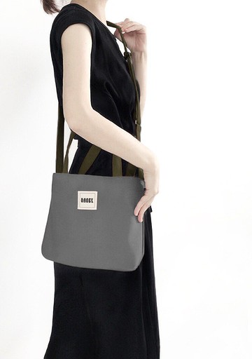 簡約輕便 2way日常斜背托特包 跳色款 / 深灰+軍綠