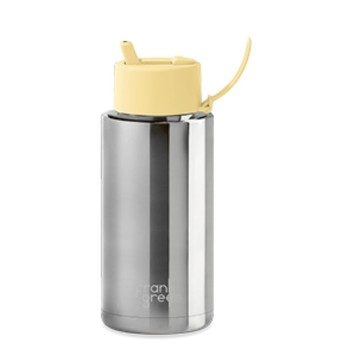 【frank green 台灣】三層真空保溫瓶 1000ml 銀色系列_鵝黃色蓋