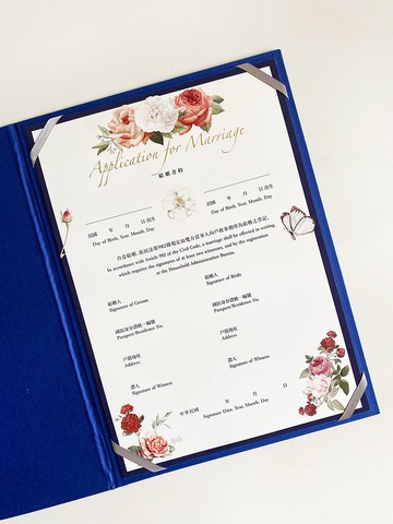 ♡結婚書約♡英式皇家玫瑰燙金款尺寸|A4紙材|晶鑽紙 250磅(比一般的250P還要厚,質感如300P)顏色|象牙白(暖白)紙材特色|表面光滑易書寫、在燈光下較明顯有亮亮的有質感的亮粉喔!加工|單面印刷+部分燙霧金*結婚書約「兩張」起賣,請下訂兩張以上*結婚書約2入,2張結婚登記使用*結婚書約3入,2張結婚登記使用及1張給新人試寫備用*僅適用台灣戶政事務所使用◇注意事項:1.商品為自然採光下拍攝,每份紙張纖維皆不同、紙張顏色也因各螢幕顯色不同,可能會有些為落差,不介意再下單喔!2.商品寄出會妥善包裝,出貨後不接受退貨喔!如是運送時有撞損請在開箱時錄影留證,會協助處理重新出貨!3.下單後3-5天工作天出貨,急件請先私訊聊聊,確認能及時發貨再下單喔!♡貼心提醒:辦理結婚登記需要備齊以下資料:結婚書約、雙方身分證正本、雙方戶口名簿、雙方2吋半彩色證件照◇關於木木木木創藝所 |Wood Wood Creative Art木木創藝所誕生於新竹,是一位專業的平面設計師同時也是一位準新娘。主設計師是位留歐藝術家,在台灣本土、外商、國外知名科技業及文創產業等累積豐厚的行銷及設計專業經驗。木木創藝所白日是位為各個業主腦力激燙的設計顧問及專案設計師,晚上則為新人們的築夢的婚禮執行者。IG: wood_wood_studioWood Wood in love|木木喜事 是旗下主推品牌樹木是堅韌、長遠、不朽的木木是兩人肩併著肩一起往下個目標前進請讓木木一同與新人分擔憂慮與婚禮的繁瑣小事,與您們同慶人生大事我們有各式結婚書約及喜帖提供新人們挑選,如果您想訂製一份屬於自己專屬的喜卡及各式婚禮週邊,我們都非常榮幸能為新人們服務。