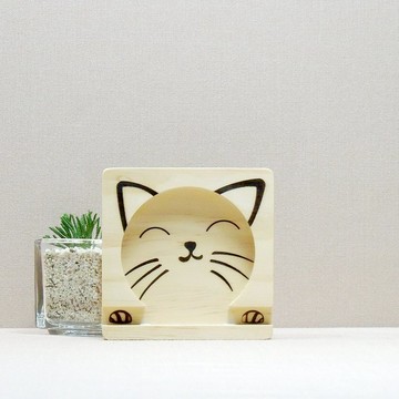 喵 寵物 可愛貓 貓咪 手機架 馬克杯墊 木製 客製 印名字 免費
