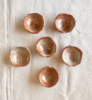 |關於規格|尺寸:直徑 6 cm x 高 3 cm ( ± 0.5 )數量:6入組材質:陶製作:獨立手捏成型,還原燒14小時|關於作品|■ 每件作品皆只有一件■ 保留手工製作的痕跡是為呈現每件作品最獨一無二的樣貌■ 釉藥燒製過程中產生的開片、縮釉、結晶等都是正常自然現象■ 攝影只能盡量展現作品真實的一面,關於作品重量、觸感、色差等皆無法透過照片傳達,若非常介意者歡迎到市集摸摸實品後再購買,或有任何疑慮歡迎私訊詢問。|關於使用|■ 不可直火加熱,且避免溫差太大的使用情況■ 初次使用前,請以洗潔劑清洗或熱水燙過後再盛裝飲品|關於YC|新作品與更多工作室日常歡迎追蹤Instagram: ycobject.studio