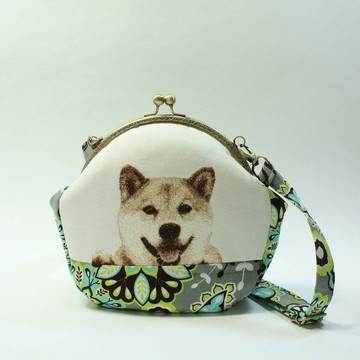 刺繡 20cmㄇ型口金斜背包08-柴犬
