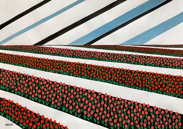 《鬱金香田》29.5x41.5厘米,2020紙、水粉顏料、墨水(需要一個框架掛在牆上)藝術家 - 阿納斯塔西婭·庫爾幹諾娃