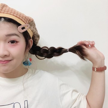 藍 紅色 秋冬 格紋 真皮 頭飾 髮繩