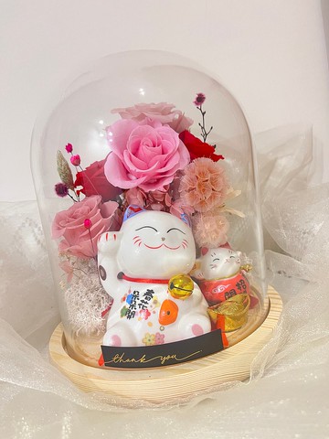 超大器招財貓玻璃盅盆花 不凋花 開幕誌慶/升遷/喬遷 祝賀首選