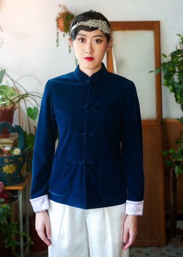 中式絲絨唐裝外套(孔雀藍/淺紫)|新年衣著|香港設計|小