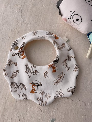 小兔愛菇菇 手工純棉六層紗單側釦花型圍兜口水巾